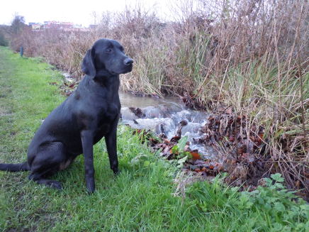 Træning med Ivy ved bækken, der på grund af regnen kunne præstere et lille vandfald.