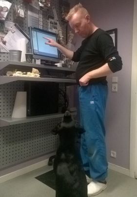 Christian er helt fantastisk med hundene. Han giver sig god tid, så hundene bliver trygge ved ham og ved de fremmede omgivelser. Han leger med dem og giver dem masser af guffer. Først når han har fået deres tillid, går han i gang med den fysiske undersøgelse og behandling. Så bliver hundene meget stille. De ser ud til at være meget opmærksomme og 'lyttende' i forhold til de påvirkninger, kroppen får.