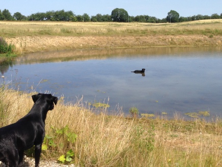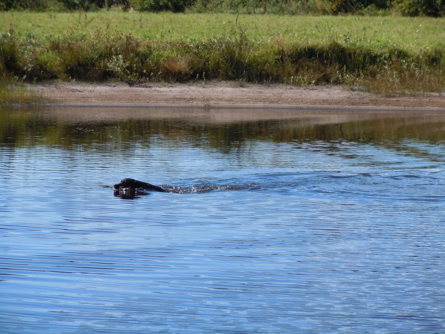 For Ivys vedkommende får hun først en markering på den anden side af søen. Derefter laver vi andre opgaver. På et senere tidspunkt kommer vi tilbage til det samme sted ved søen, og Ivy bliver sendt over til en udlagt bold eller dummy. Hun er ved at have forstået konceptet, som vi har gentaget i mange forskellige terrænner.