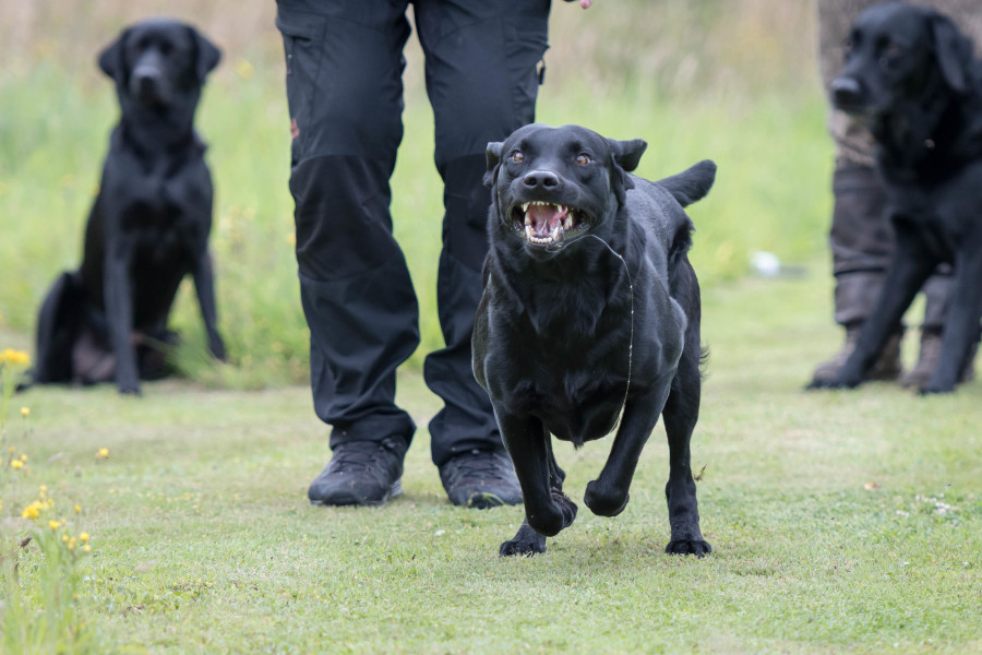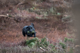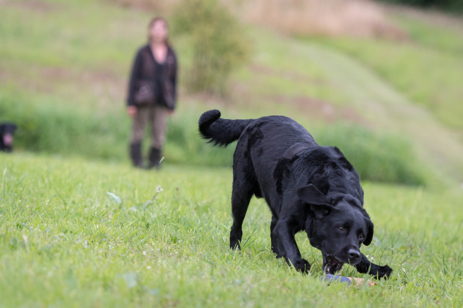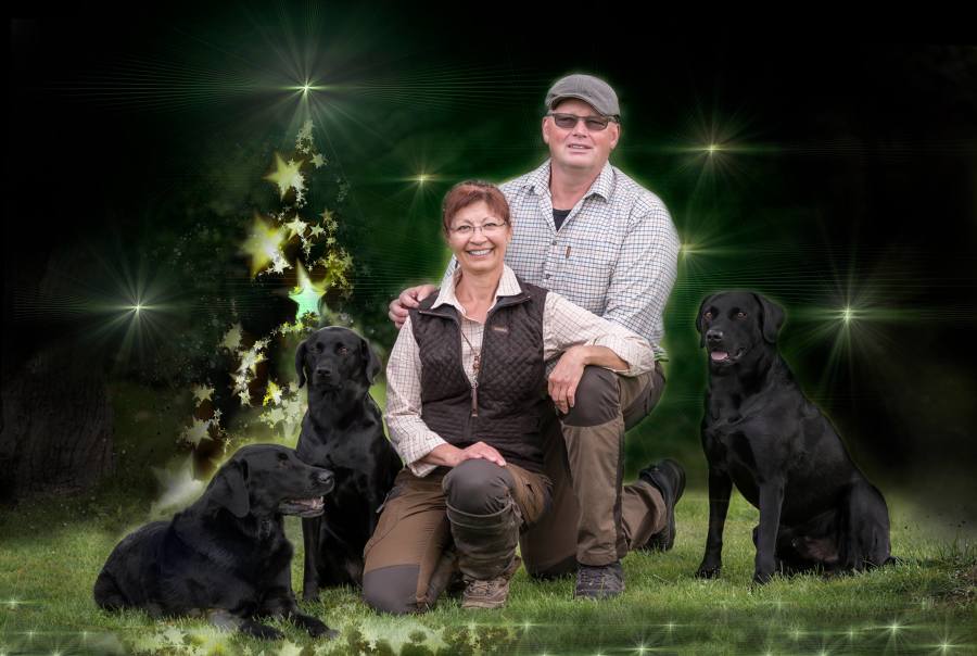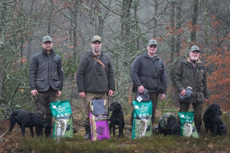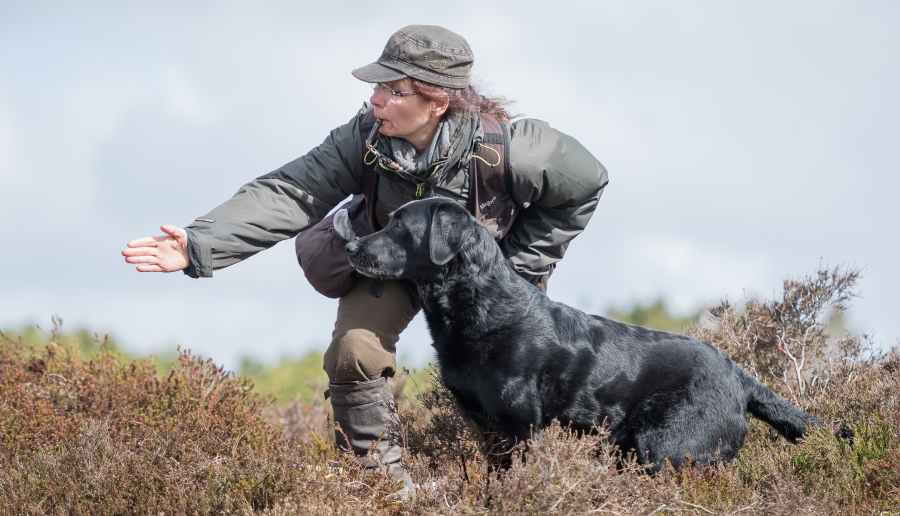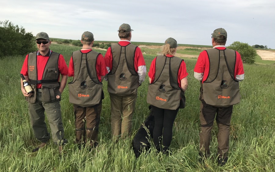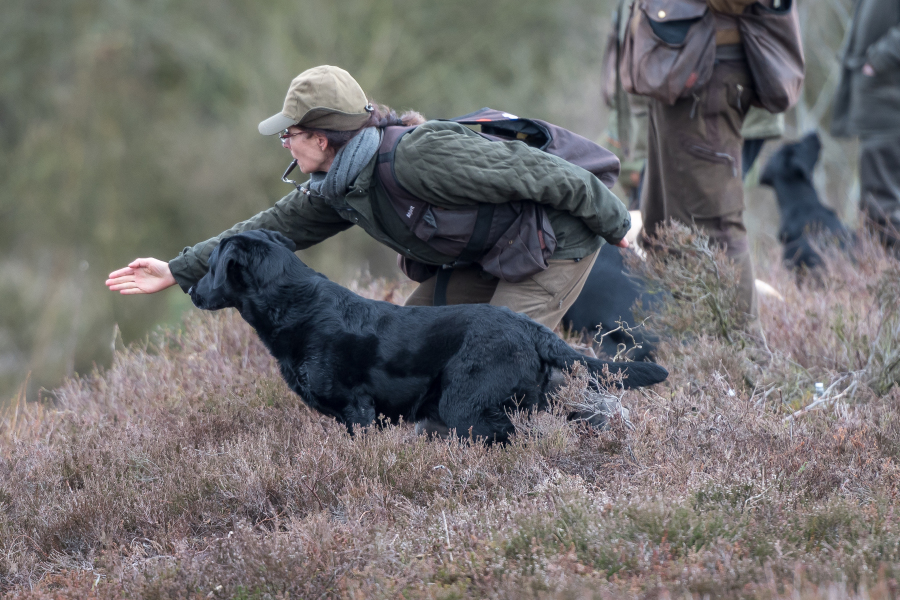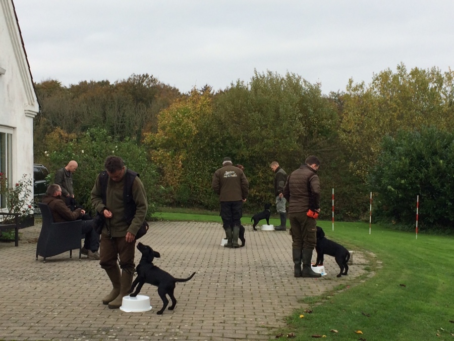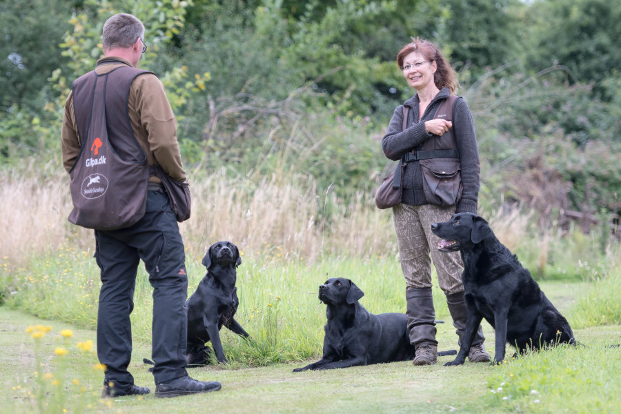 Det kræver træning og fokus, hvis man gerne vil føre to hunde samtidig på jagt og opsamling. Vi gjorde det en del i sidste jagtsæson, og i løbet af sommeren har vi trænet det yderligere. I denne sæson har vi som oftest to hunde med hver. Vi synes, det er en stor fordel at have to hunde med, idet det så bliver muligt at prioritere de forskellige opgaver. Vi tilstræber, at den enkelte hund får den type opgaver, den har mest læring ud af. Samtidig lærer hundene at en anden hund kan blive sendt, og de lærer at vente på at få udpeget deres opgave.