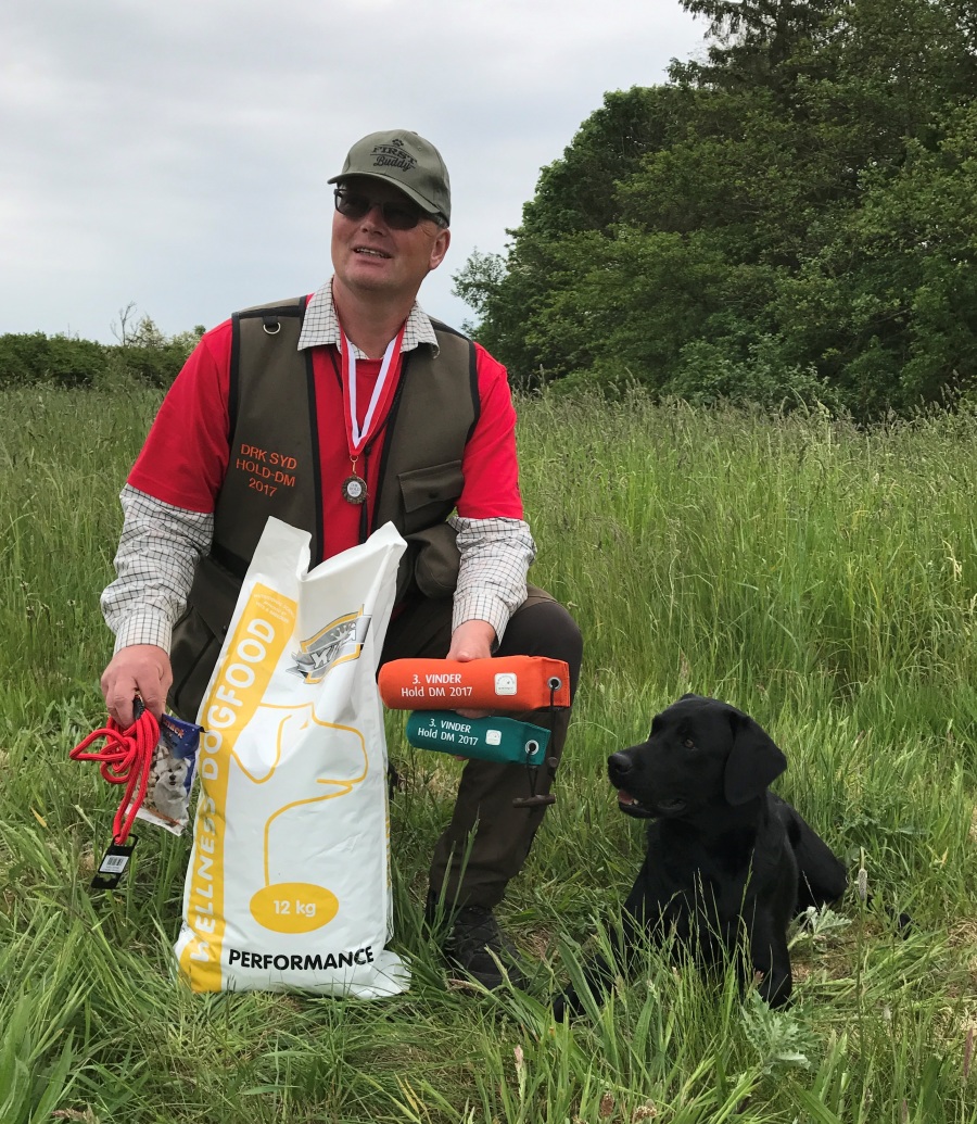 Fire poster - først en tramp i gyvel, hvor holdet opnåede 14 point, dernæst prøvens mest udfordrende post - et drev med rigtig mange markeringer, som i flere tilfælde endte med at blive dirigeringer. Her fik holdet 7 point, ikke på grund af en dårlig præstation, men en enkelt dårlig vildtbehandling trak meget ned. Dernæst fulgte en dirigeringsopgave, som holdet løste med stort overskud - 18 point. Efter frokosten var sidste post et søg med to dobbeltmarkeringer. Som eneste hold fik Region Sydjylland alle fuglene hjem. Desværre kostede en uklar/misforstået instruktion 5 point, så holdet fik 15 point. Det samlede resultat rakte til en placering som 3. vinder af Hold-DM 2017.
