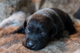 Hvalpene er nu 16 dage gamle. De har fået øjne og kan stavre rundt.
