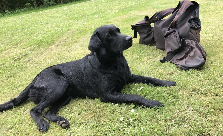 Guldahls Ivy efter bestået apporteringsprøve
