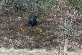 Tredie post var en tramp, hvor fuglene blev skudt og kaster på forholdsvis kort afstand igen i uoverskueligt terræn. Første markering løste Joey selvstændigt, men den anden markering ser han ikke, så jeg måtte stoppe ham og give en hånd til højre, og så havde han fuglen. Jeg har regnet ud, at vi må have fået 13 point på den post. Vores fri ved fod var ikke perfekt, og hjælpen på markeringen har også kostet.