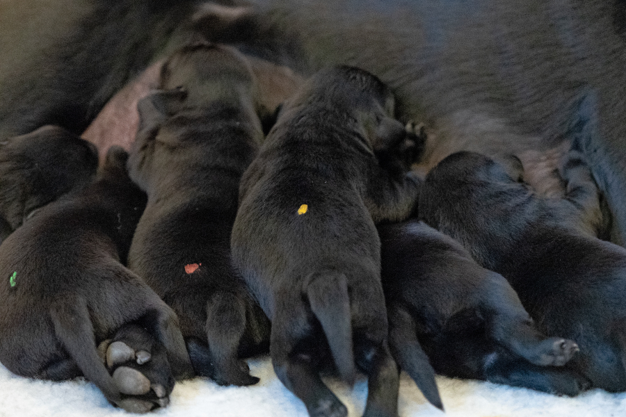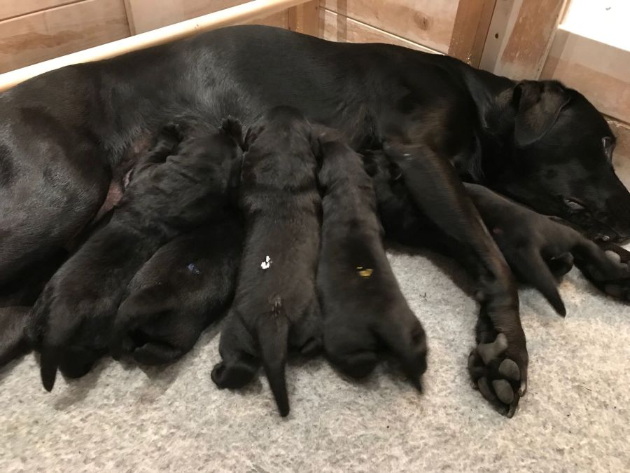 Natten til søndag fødte Ivy 6 fine drenge-hvalpe. Alle hvalpene trives, og der er fred og ro i hvalpekassen.
