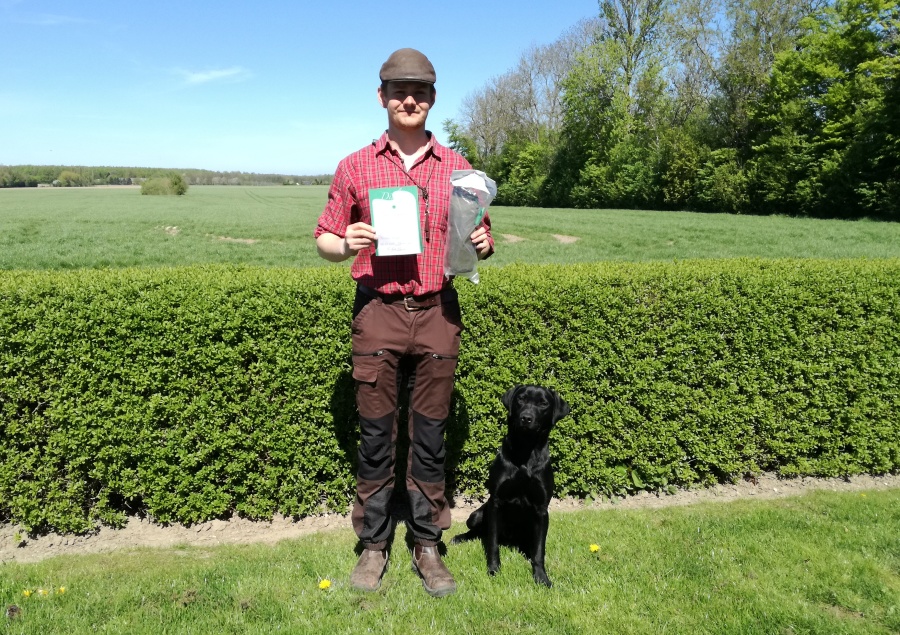 Jonas Rasmussen og Seaside Gundogs First Fetch har bestået brugsprøven og blev bedste hund, 06.05.2018