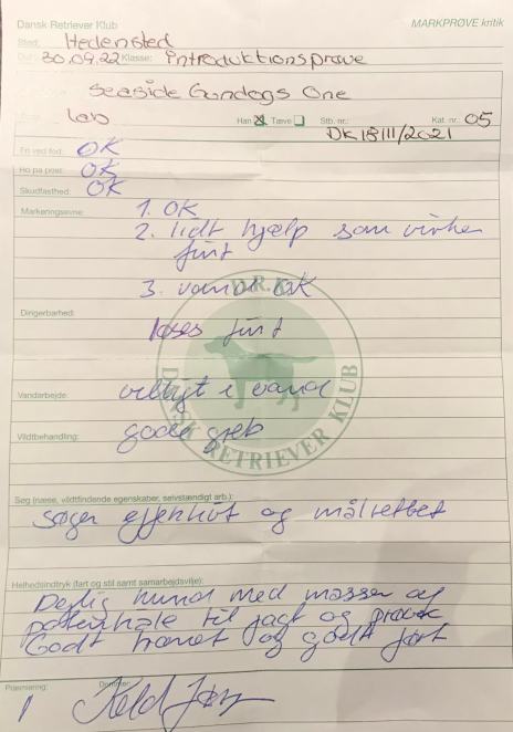 Seaside Gundogs One - 1. præmie på Introduktionsprøve i Hedensted, 30.09.2022