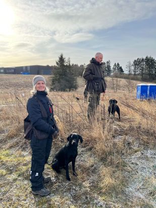 One deltog i DRK Novice Cold Game. Det er en krævende prøve både i forhold til hunden ro og dirrigeringsniveau. One er 22 måneder og klarede prøven så flot, at han opnåede bedømmelsen Excellent. Dermed er One kvalificeret til at stille på efterårets Novice Class på markprøve.