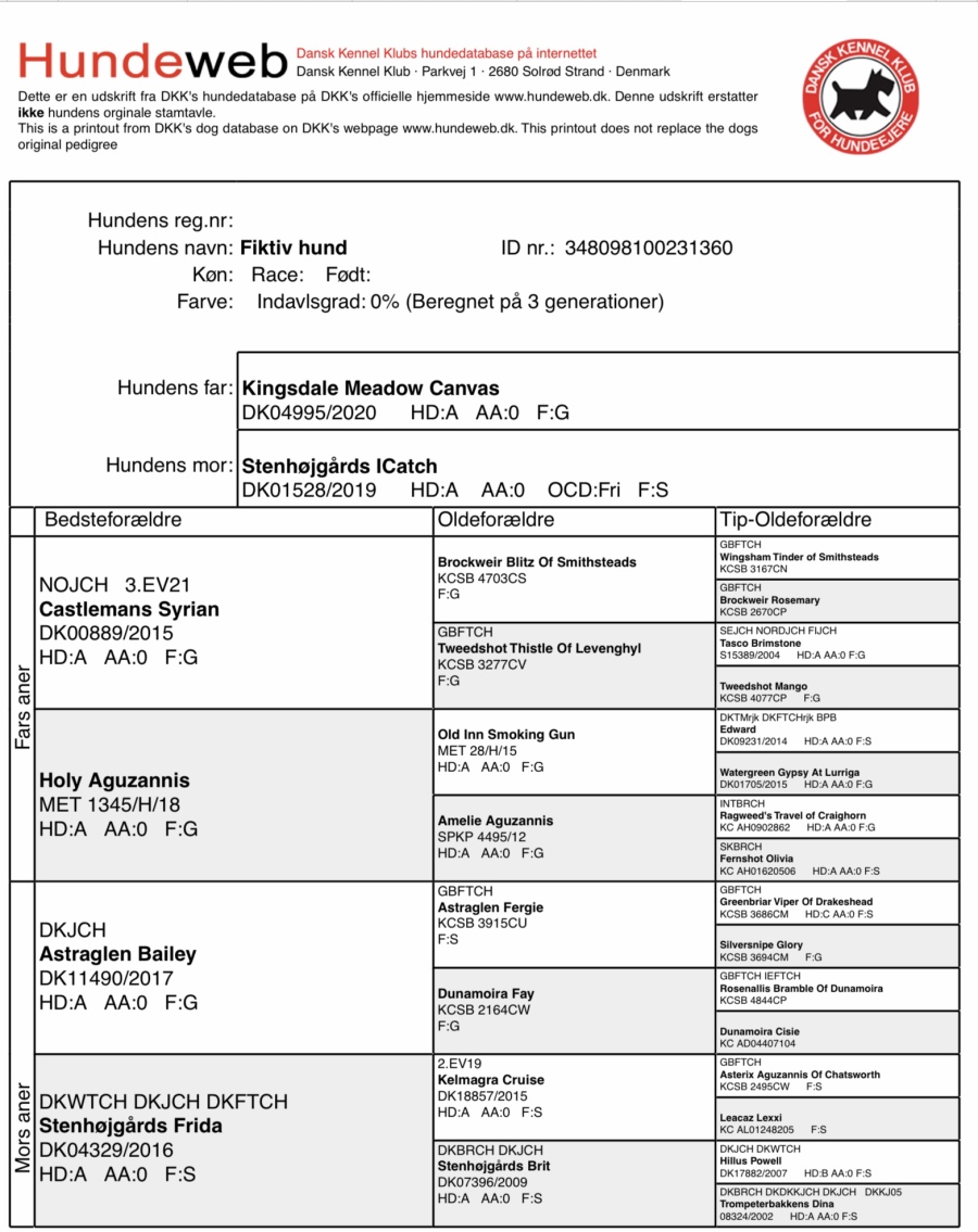 Catch's og Canvas sundhed er i top (Index 115 og 108), og hvalpene får en flot stamtavle.